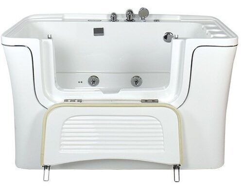 Mukana on myös ”puppy booster” eli koroke (koko: 59,5cm*56,5cm*18cm) pienten lemmikkien pesun helpottamiseksi. Altaan pohjassa on valmiina sihdillä varustettu poistovesiyksikkö. Liukumaton pohjamatto päästää veden läpi ja siihen tarttuvat helposti irtokarvat. Matto on helppo irroittaa ja puhdistaa.