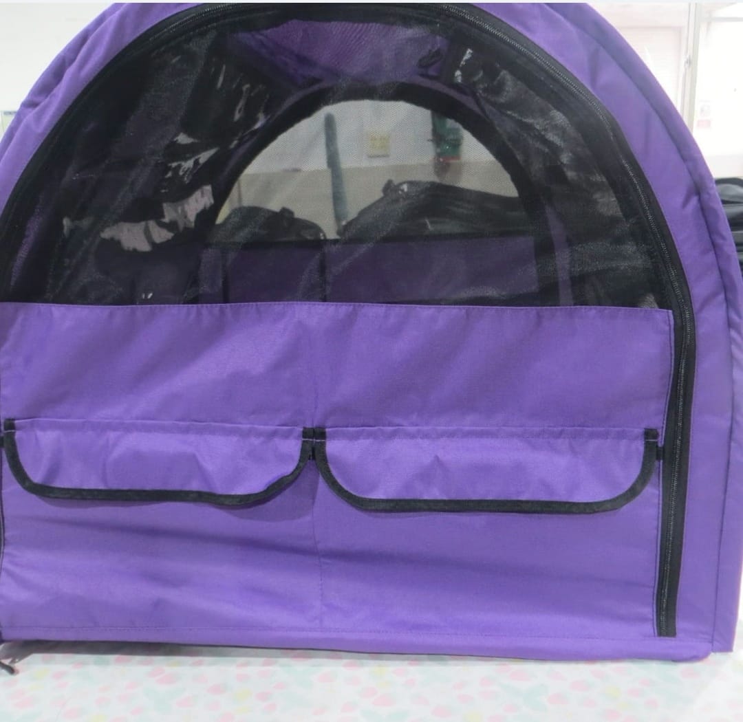 Mukaan tulee jämäkkä kantolaukku häkille sekä makuualusta.